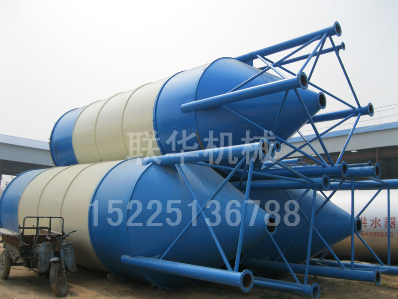 说到水泥仓的使用,首先不得不说的是水泥仓的安装问题,水泥仓一般是由厂家直接运输的工地,工作人员需要用专用吊机将其立起,然后放到预先预制好的混凝土基础之上,并检查水泥仓立起以后与水平面的垂直度,然后将其底部与基础预埋件焊接牢固。安装过程很简单,但是一定要注意安装过程中,严禁仓体倾斜、支腿变形等;水泥仓的使用是由散装水泥车运送水泥至工地,然后将散装水泥车的输送管路与水泥仓的进料管路相接,通过散装水泥车的气体压力将罐内水泥输送到水泥仓内。根据水泥仓的结构不同,卸料一般有两种方式,一是下部与螺旋输送机连接,用螺旋输送机将粉料送入粉料计量,二是采用气力输送(对特殊结构的水泥仓)。不管是哪种情况,由于散装物料都是容易意气灰尘的,所以在输送物料时,操作人员要带上口罩,还要不间断的按动除尘器振动电机的按钮,抖落附着在除尘器布袋上的水泥,防止堵死布袋,发生爆仓,这些操作虽然很简单,但是一定要按要求完成,否则不仅污染空气,而且还影响工作人员的健康情况。水泥仓的保护,就是做好日常检查工作,如;做好防风、防雷工作;严禁强力撞击支腿及仓体;定期检查除尘器布袋的水泥附着情况,及时清理。